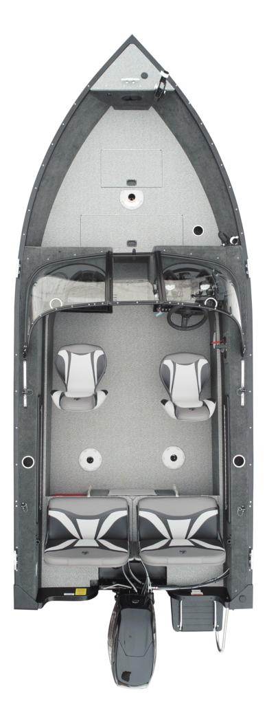 Full windshield. 50/50 split convert-a-bench. Room to store all your fishing gear. Optional ski pole.